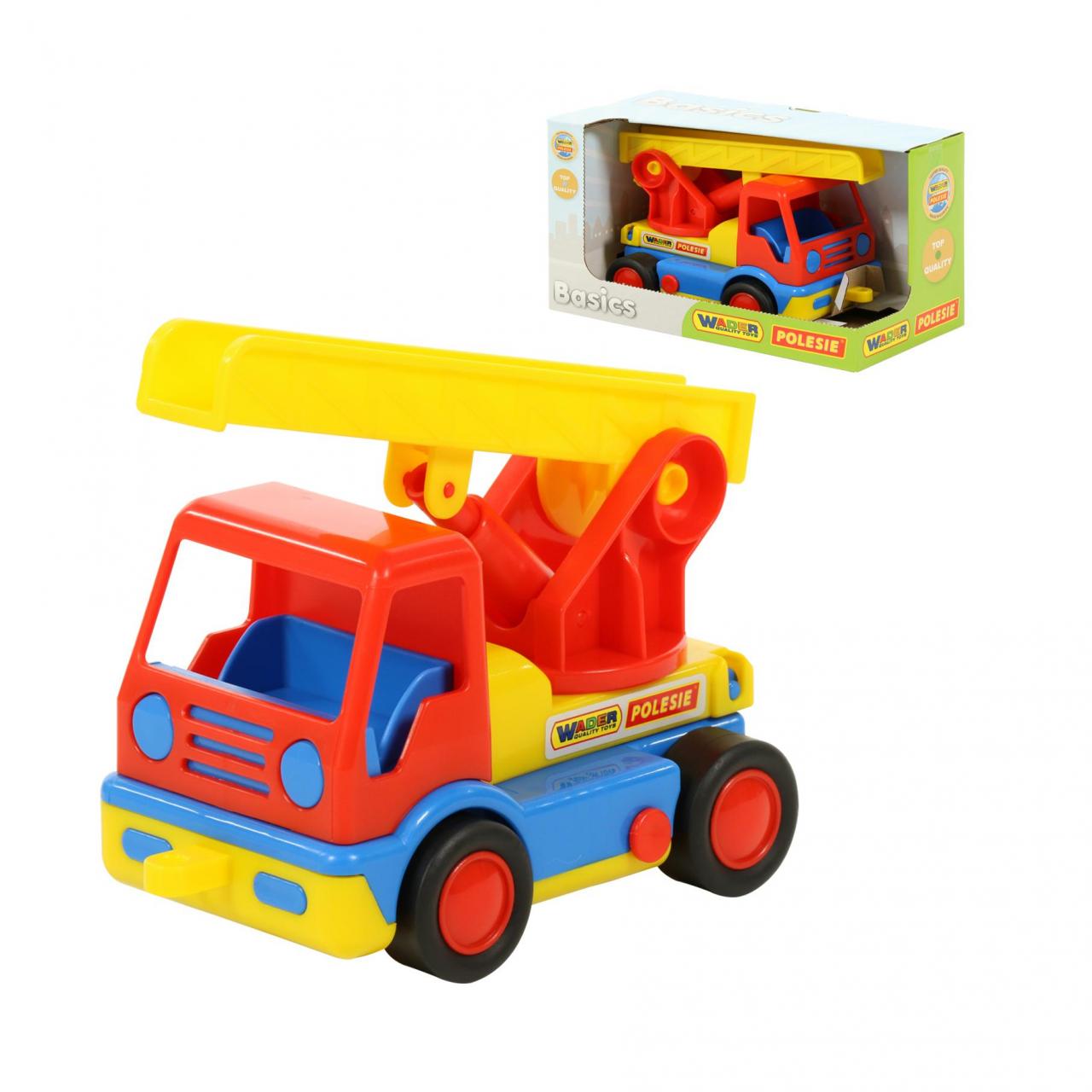 Стильні, зручні та невеликі машинки для малюка від фабрики "Полісся" - це серія "Базік". Вони відрізняються компактним розміром, продуманою ергономікою, забарвленням та функціоналом. Пожежний автомобіль призначений для роботи під час надзвичайних ситуацій. Він оснащений підйомним краном. Кругла платформа, де встановлено кран, повертається, що робить іграшку ще цікавіше. Колеса автомобіля з гумовими накладками, що забезпечує практично безшумне катання іграшки на будь-якій поверхні. Наявність буксирувальної петлі на передньому бампері автомобіля дозволяє возити машинку за собою на мотузку. Іграшка виготовлена з харчового пластику і є максимально безпечною для дитини! Також пластик легко мити, при цьому він не втрачає своїх споживчих властивостей. Машинка упакована у барвисту коробку, що робить її ідеальним подарунком для малюка.
