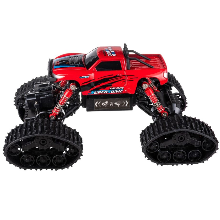 Машинка має повний привод всіх коліс, великий дорожній просвіт, незалежну підвіску, а також великі шини з рельєфними протекторами, які, у свою чергу, і забезпечують автомобілю чудову прохідність. Але основною перевагою машини можна по праву назвати змінні колеса. Зі звичайних круглих можна перейти на особливі гусеничні. Як танк, машина подолає будь-яку перешкоду, їй не страшні ніякі перешкоди!