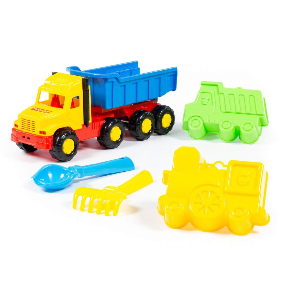 » » » Набір №68: "Фаворит", автомобіль-самоскид + совок №2, грабельки №2, формочки (самоскид + паровоз)