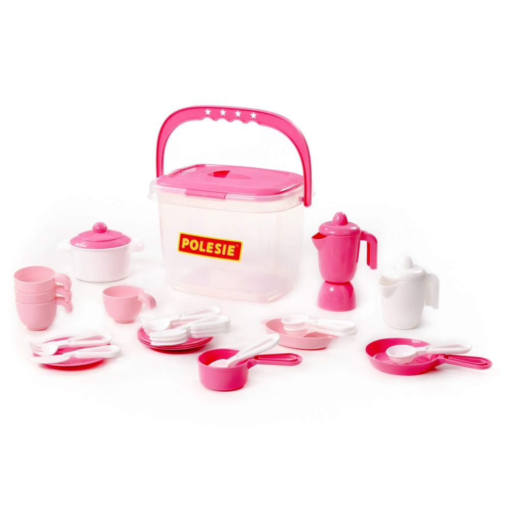 Дитячий іграшковий посуд від компанії «Полісся» – незамінний елемент сюжетно-рольової гри! За допомогою такого ігрового атрибуту можна грати «в кафе», «в їдальню», «в ресторан», в офіціанта, повара», влаштовувати лялькові походи з гостями. Малюки й самі можуть пити з іграшкових чашечок, пригощати друзів, ляльок, тваринок. Набор представлений в рожево-білій гаммі та включає в себе велику кількість елементів (29 шт.), які зберігаються у пластикову відерці, що дуже зручно при переміщенні. Грати з посудом можна не тільки вдома, але й на вулиці, в пісочниці, у дворі. Всі деталі набору виготовлені з харчового пластику та повністю безпечні у використанні. Також за посудом легко доглядати, при цьому він не втрачає своїх споживчих властивостей. Гра з дитячим іграшковим посудом від фабрики «Полісся» допоможе дівчинці придбати навички юної господині, розвинути свої творчі здібності, самостійність і гостинність, придбати необхідні знання, які неодмінно стануть у пригоді в майбутньому! У наборі: кавоварка еспресо - 1 шт., кавник - 1 шт., сотейник - 1 шт., пательня - 2 шт., салатниця - 1 шт., чашки - 4 шт., блюдця - 4 шт., вилки - 4 шт., ложки - 4 шт., ножі - 4 шт., кришки.