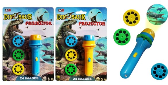 Світловий проектор з функцією відображення 24 картинок. До складу набору входять: проектор, 3 змінних кільця з картинками.
