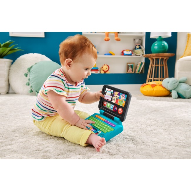 З інтерактивним ноутбуком "Веселе спілкування" серії "Посміхайся та навчайся" від Fisher-Price дитина може гратися та вчитися як вдома, так і в будь-якому іншому місці.