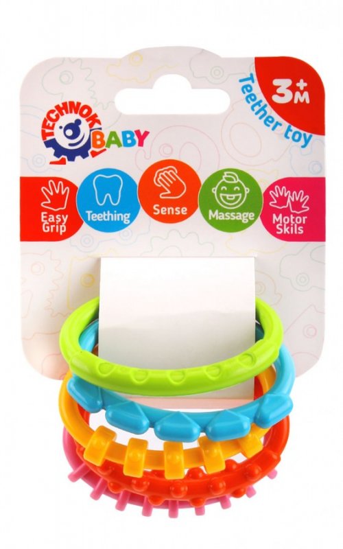 Період прорізування зубів – нелегкий для дітей та батьків. Малята вередують, постійно хочуть щось погризти, тому тягнуть все в рот почухати набряклі та роздратовані ясна. Різноманітні прорізувачі знадобляться для масажу та ігор. Вони заспокоюють свербіж, відволікають дітей яскравими квітами та приємним дзвінким звуком. Так малюки вдосконалюють дрібну моторику та координацію, зір, увагу. Технок Кільця - це багатофункціональні кільця-прорізувачі різної форми. Це гризунки, але в той же час цікава іграшка-брязкальце. Різноманітні виступи і потовщення підходять для масажу ясен, можна з'єднувати ланцюжком і кріпити на коляску.