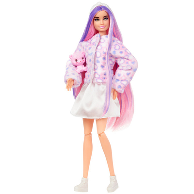 У коробці ви знайдете милого рожевого ведмедика в кольоровій футболці з написом «Love», у якому ховається лялька! Зніміть голову костюма — і ви побачите ляльку Barbie з ніжно-рожевим волоссям, 11 рухомими шарнірами й ніжним макіяжем на обличчі з яскраво виразними очима!