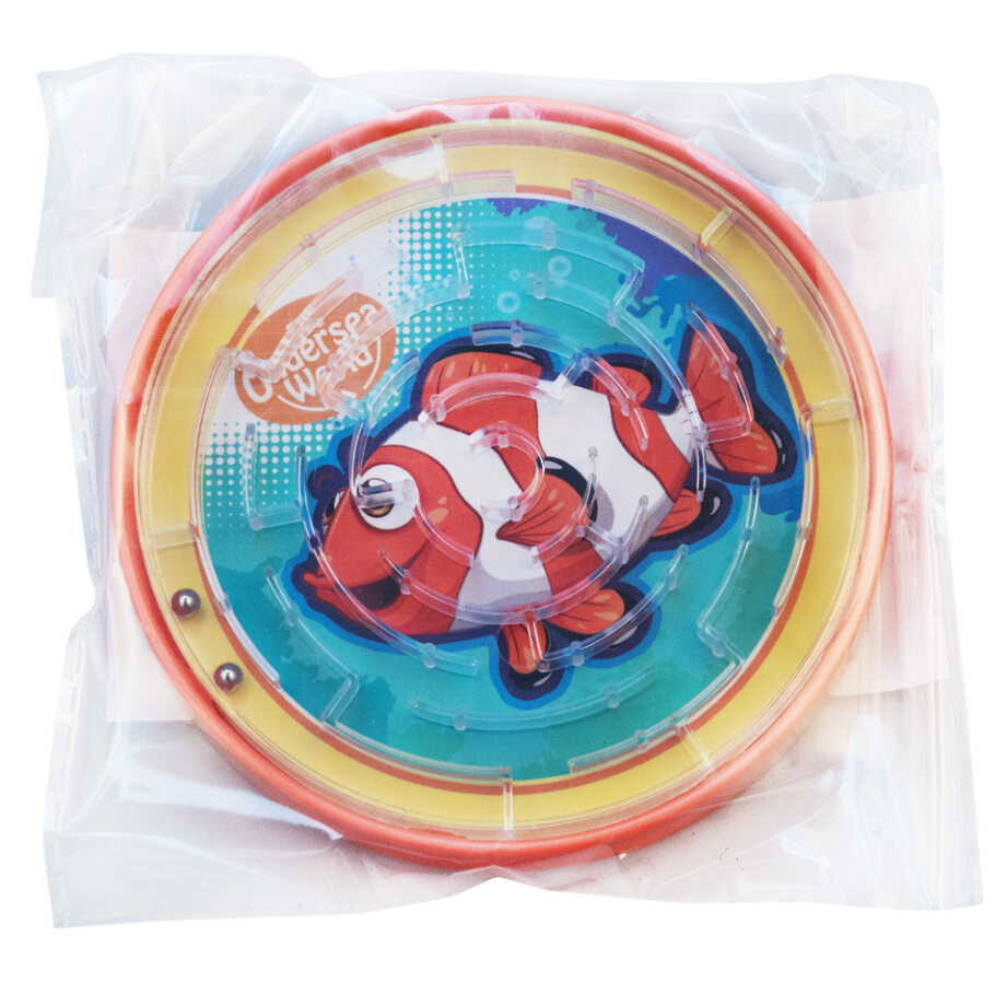 Іграшка-головоломка "Лабіринт" зацікавить усіх: від малого до великого. Ця проста іграшка чудово тренує уважність і посидючість, а ще вона допомагає розслабитися і зайняти себе корисною справою, поки ви їдете на роботу, навчання чи подорожуєте. Невелика іграшка дозволить брати її з собою будь-куди. Мета гри проста: закотити металеві кульки в отвір у центрі лабіринту.