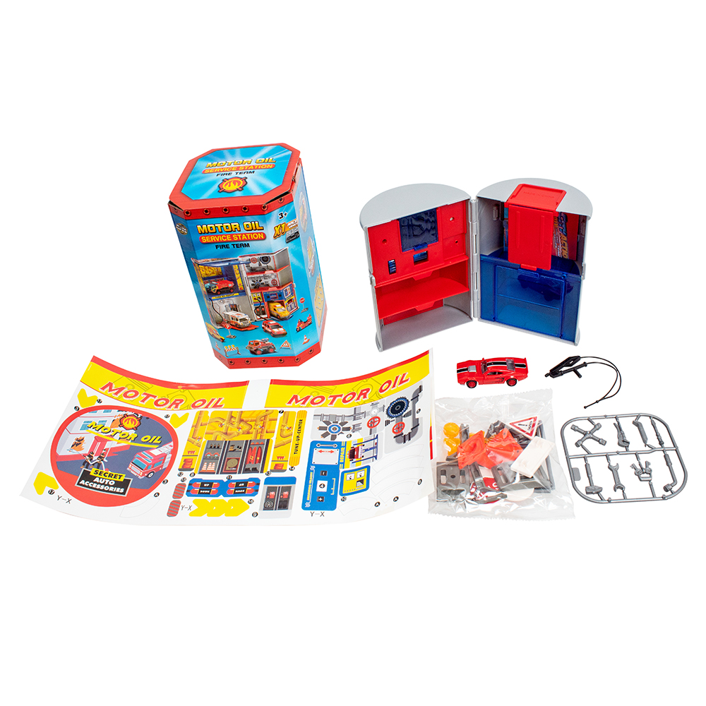 Паркінг "станція технічного обслуговування". У закритому стані паркінг є компактним пластиковим контейнером, виконаним у формі бочки моторного масла. Контейнер відкривається надвоє, трансформуючись в ігрове середовище. Усередині також відкриваються дверцята гаража, відкидаються 2 рампи. В асортименті 4 теми: пожежна служба, поліція, будівельна техніка, спортивні машинки.