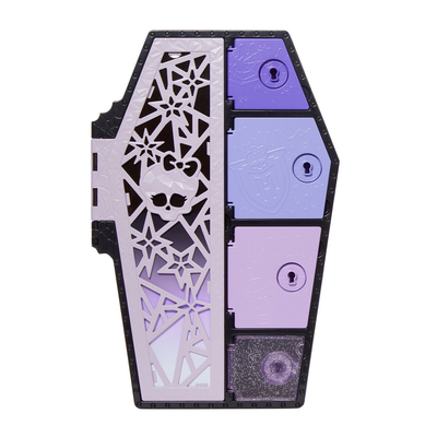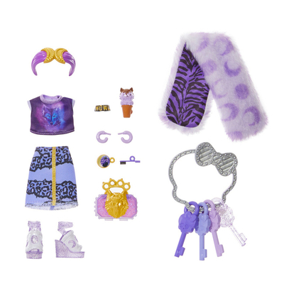 Набір-сюрприз Monster High Відпадний стиль Жахо-секрети Клодін відкриє скелети в шафі, що ховає ця монстро-учениця! Шафа різних відтінків фіолетового містить 18 сюрпризів, серед яких модне вбрання, аксесуари та тематичні предмети, які якнайкраще підкреслюють образ ляльки. Лялька вдягнена у відпадний наряд — кофту перевертня з прозорими рукавами, блискучі бузкові шорти та високі чоботи з оригінальним дизайном. Відкрийте найбільший відсік, всередині ховається жах яка крута Клодін! А що заховано в інших шафках? Кортить дізнатись! Для цього знадобиться ключ. Занурте його у теплу воду та погляньте на ефект «Кольорового перевтілення». Тепер ключ такого ж кольору, як і дверці, які можна ним відкрити. А всередині знову фантастичні подарунки та наступний ключ. Повторюйте гру з перевтіленням, поки не будуть відкриті усі відсіки і знайдені усі сюрпризи! Перевдягніть монстро-ученицю та прикрасьте її усіма аксесуарами. Образ буде вбивчо-модний, витриманий в унікальному стилі вовкулаки.