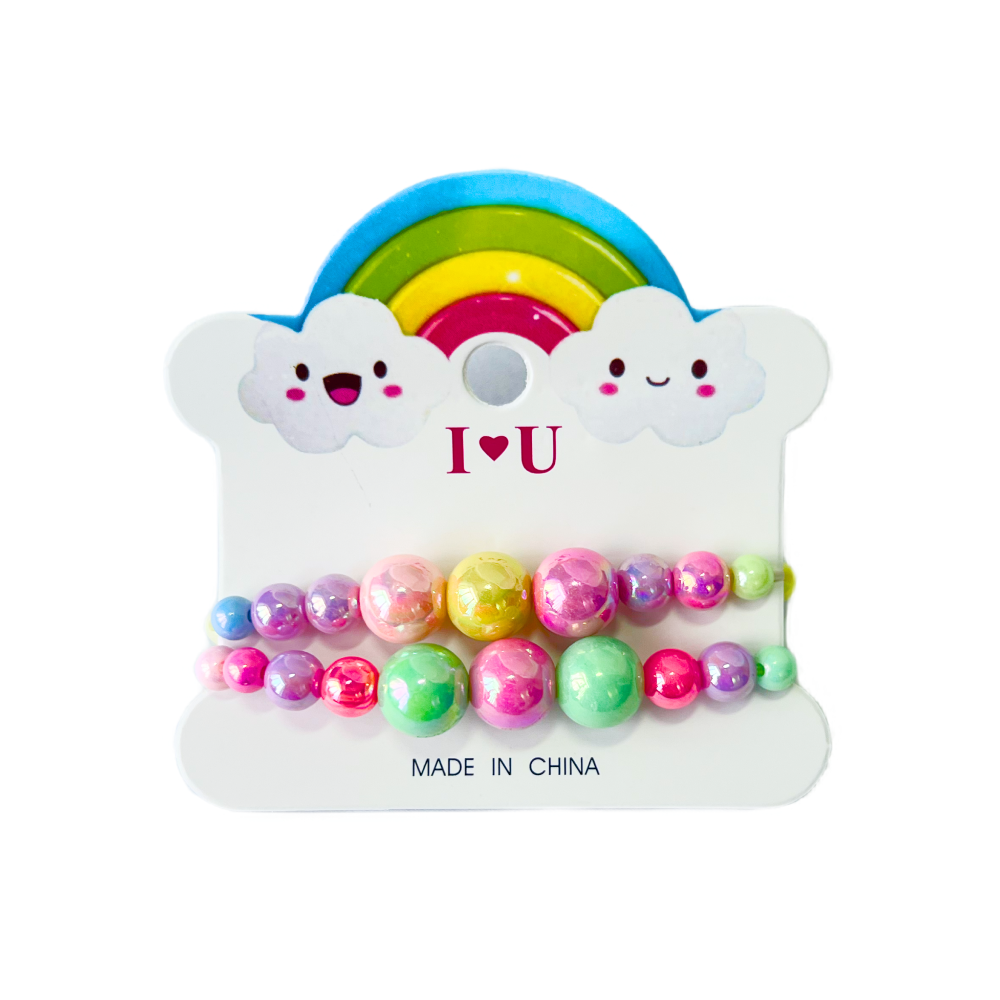 Розбав буденність яскравими прикрасами веселкових кольорів. В наборі 2 готових браслети з яскравих намистин різного розміру. Браслети у асортименті.