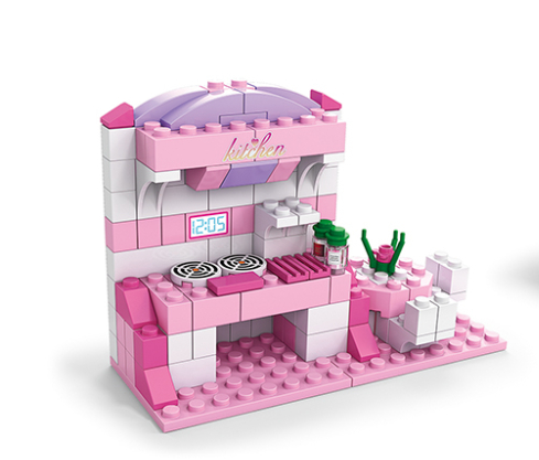 З 1000 деталей можна зібрати 6 окремих елементів: ліжко, спальню кухню, ванну кімнату, туалетний столик, вітальню . Всі елементи об'єднуються у великий виріб - будинок принцеси. Конструктор легосумісний, у кожній упаковці є інструкція – детальна, кольорова, наклейки для оздоблення готових виробів, деталі, посортовані в пакети. Елементи конструктора вироблені з пластику. Конструювання розвиває дрібну моторику та допомагає тренувати координацію рухів.