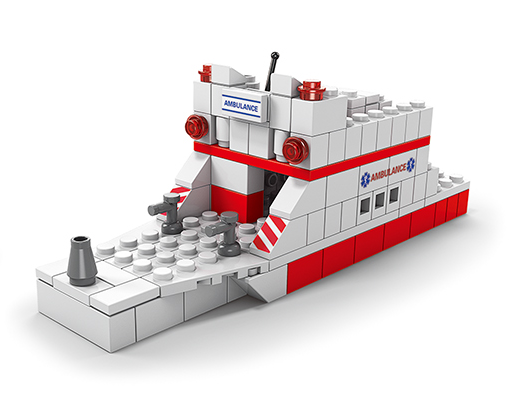 З 1000 деталей можна зібрати 6 окремих елементів: машинку швидкої допомоги - 2 штуки, приймальню, реанімацію, діагностувальний центр, човен швидкої допомоги. Всі елементи об'єднуються у великий виріб - авто швидкої допомоги. Конструктор легосумісний, у кожній упаковці є інструкція – детальна, кольорова, наклейки для оздоблення готових виробів, деталі, посортовані в пакети. Елементи конструктора вироблені з пластику. Конструювання розвиває дрібну моторику та допомагає тренувати координацію рухів.