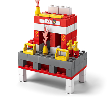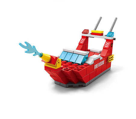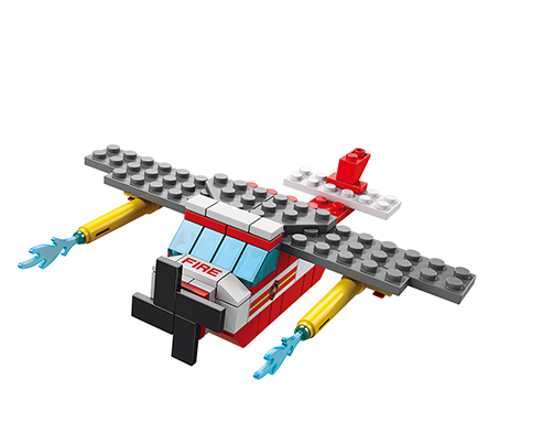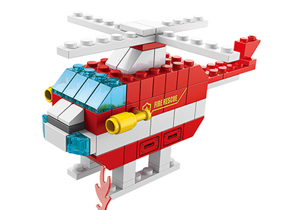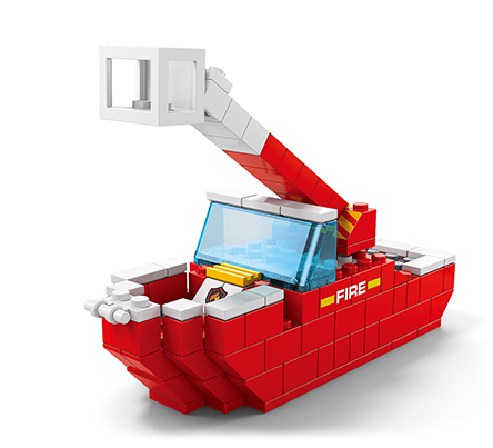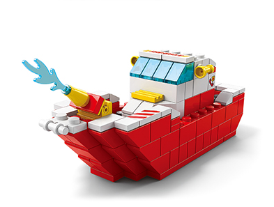 З 1000 деталей можна зібрати 6 окремих елементів: пожежний гелікоптер, пожежний літак, пожежна станція, пожежні кораблі - 3 штуки. Всі елементи об'єднуються у великий виріб - пожежний корабель. Конструктор легосумісний, у кожній упаковці є інструкція – детальна, кольорова, наклейки для оздоблення готових виробів, деталі, посортовані в пакети. Елементи конструктора вироблені з пластику. Конструювання розвиває дрібну моторику та допомагає тренувати координацію рухів.