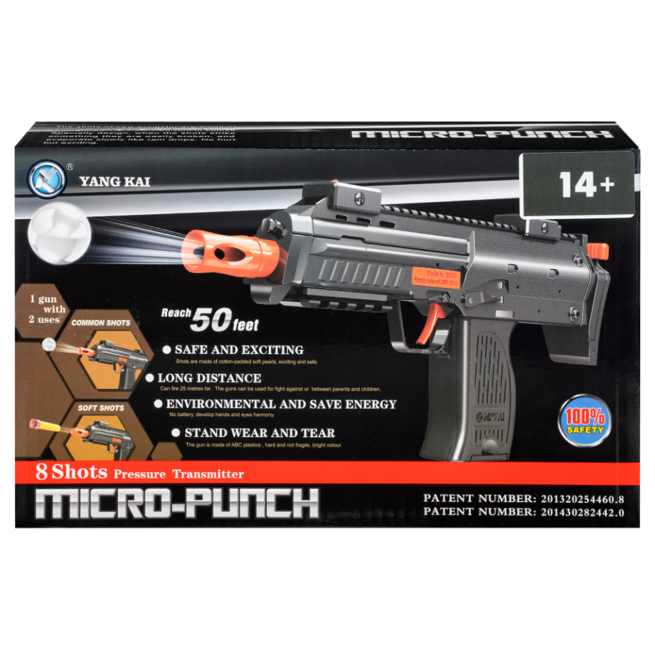 Іграшковий пістолет, який стріляє не тільки м'якими стрілами, а й гідрогелевими кульками. Кулі для гри вирощуються дуже просто: насипте трохи вмісту пакетика в ємність і залийте водою, через 4 години ваші гелеві снаряди готові (розмір кульки 1-1,2 см).