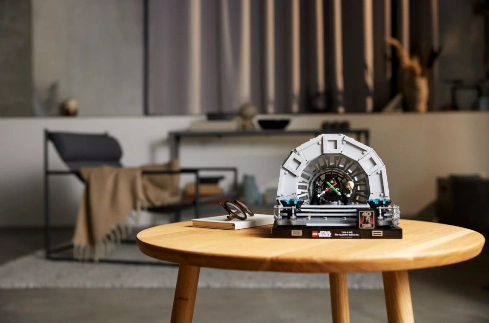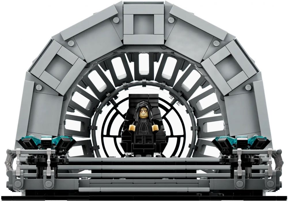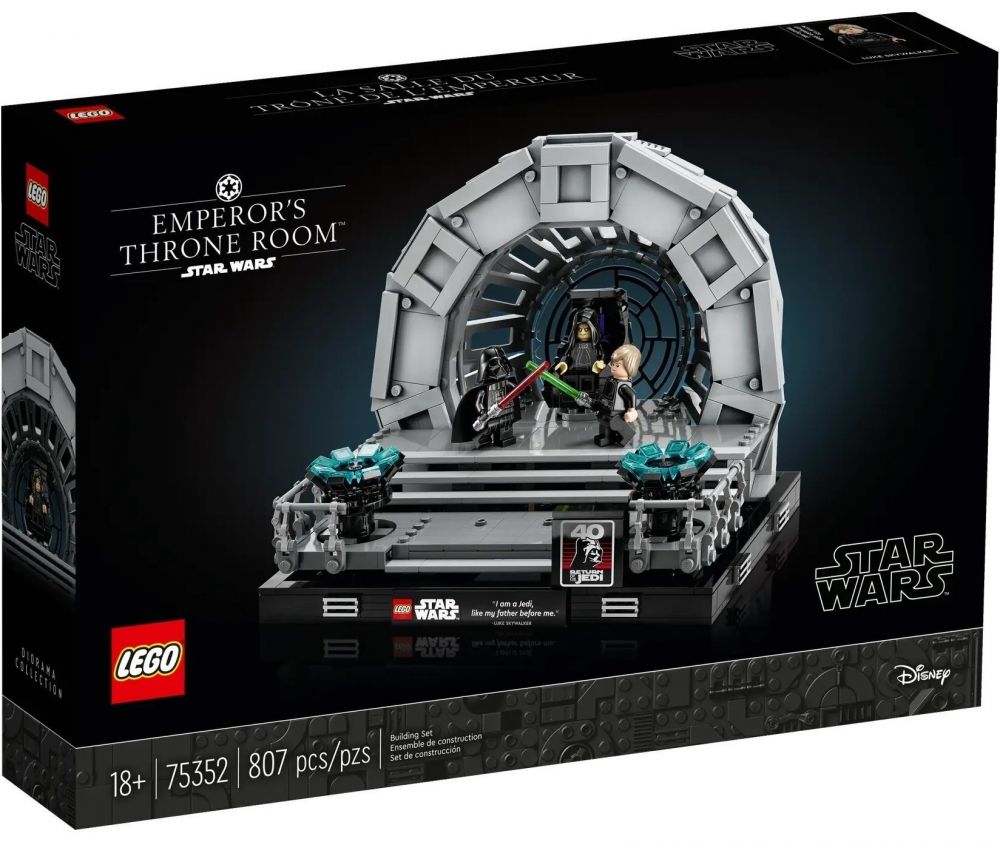 Відтворіть драматичну кульмінаційну сцену класичної трилогії «Зоряні війни» завдяки конструктору LEGO Star Wars Діорама «Тронна зала імператора». Конструктор містить: вікно Зірки Смерті; трон імператора Палпатіна; мініфігурки Дарта Вейдера й Люка Скайвокера; мініфігурка імператора Палпатіна; світлові мечі; елементи блискавок ситхів; безліч автентичних деталей. Цей конструктор доповнений табличкою з відомим висловом Люка «Я — джедай, як і мій батько» та табличкою з логотипом до 40-ї річниці фільму «Зоряних воєн: Повернення джедая». Набір входить до колекції наборів LEGO «Зоряні війни» для дорослих, що включає інші збірні діорами із зображенням культових сцен, і стане чудовим подарунком для себе та інших.