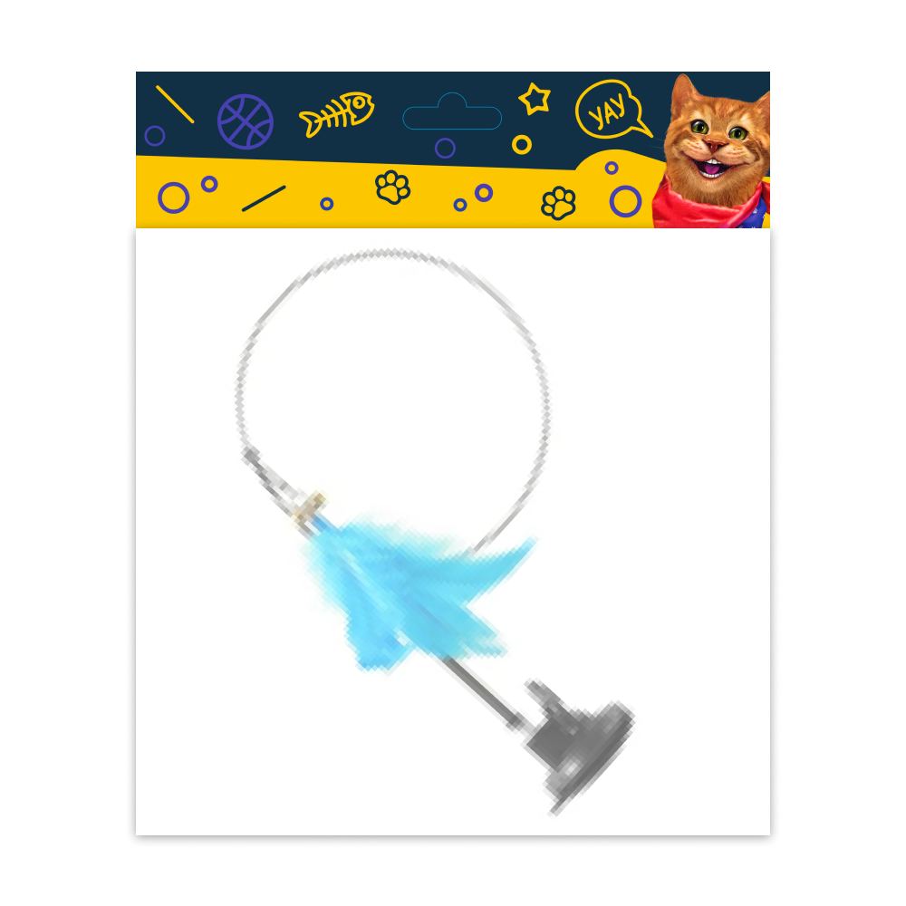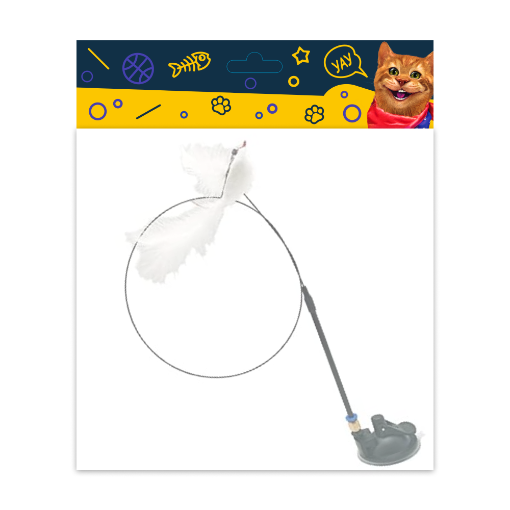 Іграшка у вигляді палиці-«вудочки» зі стрижнем і наконечником із пір'я, підставка із пластику , яка кріпиться на будь-якій гладкій поверхні. Захоплююча розвага з вилову м'якого пір'їна дозволить вихованцю не втрачати навичок полювання, розвиває координацію та допомагає зберегти активність під час ігор, корисна для інтелектуального розвитку котів і кішок, відволікає тварину від псування меблів та інших речей, знижує агресивність. Висота іграшки: 82 см.