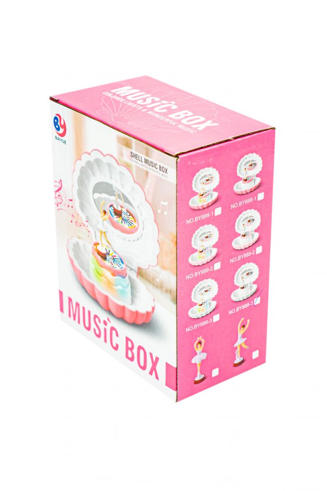 Чарівна скринька у вигляді мушлі-неймовірно красивий аксесуар, органайзер для прикрас. Це світ, де панує гармонія та краса, це маленька скарбничка юної красуні. Унікальним елементом скриньки є балерина, яка закружляяє у танці під чарівну музику. У скриньці можна зберігати прикраси: сережки, підвіски, каблучки.