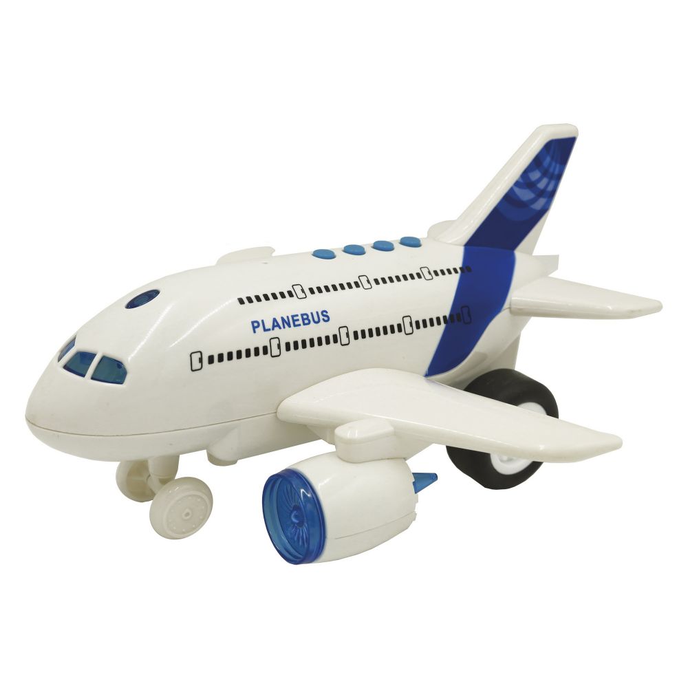 Інерційна модель літака-функціональна іграшка з привабливими спецефектами. Відмінне поповнення парку! Пророблений дизайн іграшкового літака. Літак - на колесах, з інерційним механізмом руху. Звукові та світлові ефекти. Кнопки на даху для запуску ефектів. Відмінно підходить для сюжетних активних ігор.