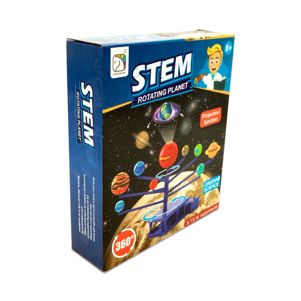 За допомогою цього набору дитина зможе досліджувати Сонячну систему в ігровій та захоплюючій формі. Завдяки моделі Сонячної системи дитина зможе дізнатися більше про розміри, орбіти та унікальні особливості кожної планети, розвинути просторове мислення, уяву та допитливість. Крім того, модель стане справжньою окрасою дитячої кімнати. Модель оснащена проектором, який проектує зображення кожної з 8 планет. Планети автоматично обертаються навколо Сонця, створюючи реалістичну картину руху Сонячної системи.