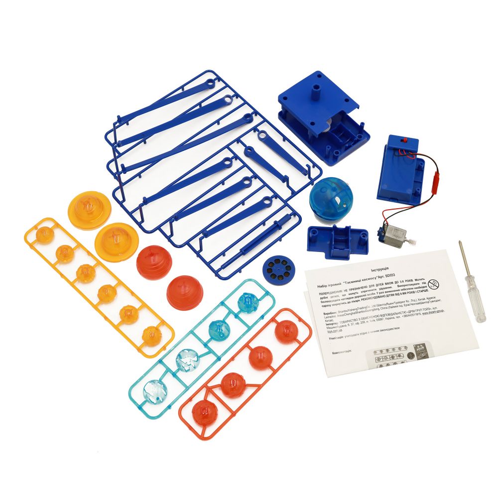 У комплект входять деталі для складання основи моделі, вісь, 8 кріплень для планети, деталі для складання 8 планет, проектор у формі сонця, фільм для проектора, гвинти, викрутка.