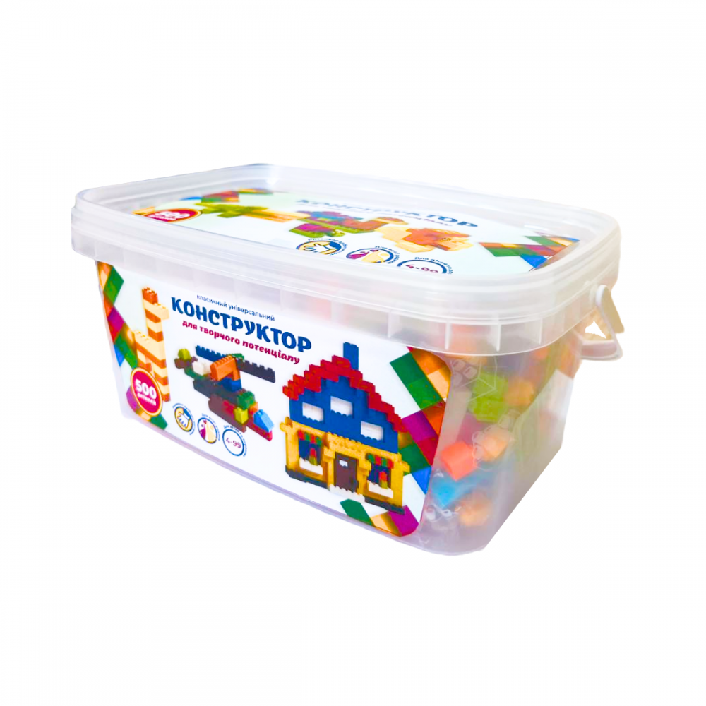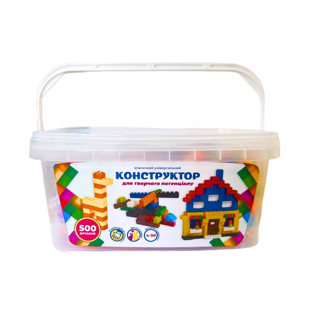 Конструктор універсальний - набір в пластиковому контейнері на 500 деталей виготовлений з якісного пластику в яскравих кольорах. Сприяє розвитку фантазії, дрібної моторики, мислення та покращує концентрацію. Конструктор універсальний тим, що з нього можна скласти як прості фігури, так і складніші, можна будувати будинки, тварин, улюблених персонажів тощо. Підходить як для дітей різної вікової категорії, так і для дорослих. Сумісний з іншими конструкторами, зручний у використанні.