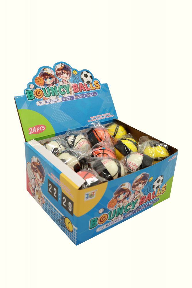 Дитячий м'ячик на шнурку підійде для активних ігор, спортивних тренувань і зняття стресу. М'ячик за допомогою шнурка кріпиться до браслету, який надівається на руку. Завдяки цьому м'ячик не впаде і не полетить під час гри. За допомогою іграшки можна робити вправи на розвиток координації рухів і дрібної моторики. М'ячик м'який і пружний, добре мнеться, що робить його відмінною іграшкою-антистрес. Браслет на липучці можна регулювати під різний обхват зап'ястя. Діаметр м'яча: близько 6,3 см.Упаковка: дисплей на 24 вкладення + п/е пакет. Розмір дисплея: 26*20*12 см.