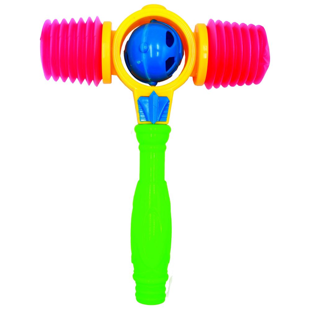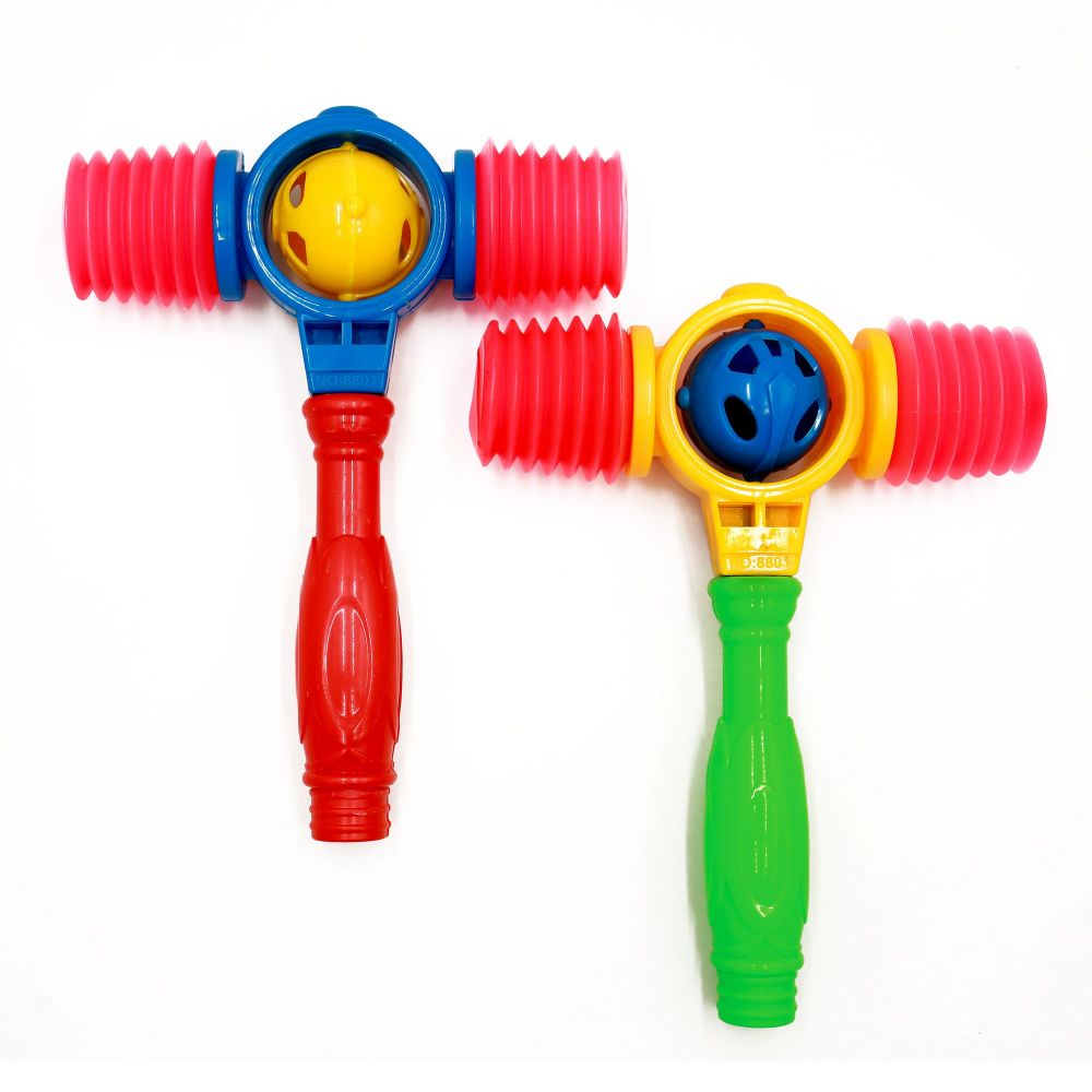Іграшковий молоточок з дзвіночком усередині. При ударі дзвіночок у центрі молоточка дзвенить, а пружинки з боків пищать.