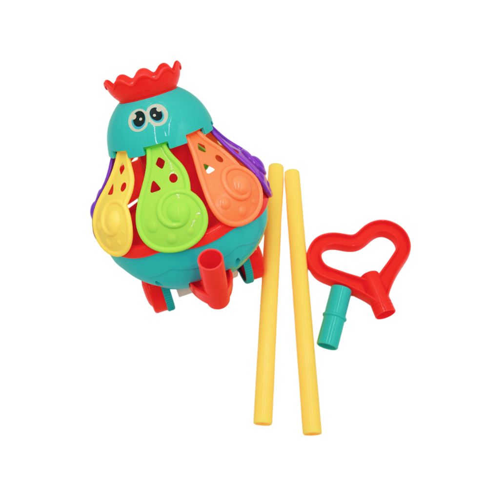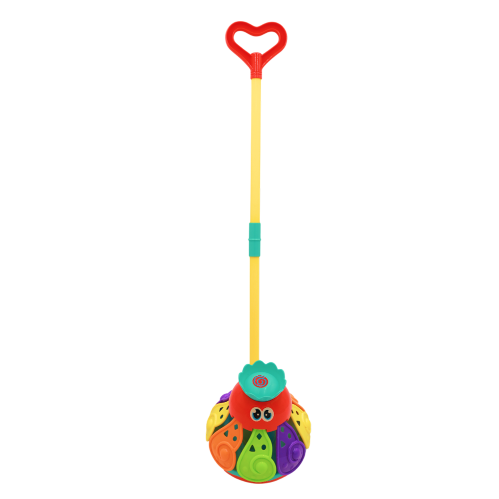 Дитяча каталка в образі кольорового восьминіга. Іграшка має яскраве забарвлення, яке привертає увагу дітей. Коли каталка починає рух, різнокольорові щупальця восьминога підіймаються вверх та починають крутитися, видаючи звук дзвіночка. Іграшка має ручку, яка складається та розкладається. Розмір восьминіга: 13 х 17 х 19,6 см. Довжина ручки: 51 см. Пакування: сітка з холдером.