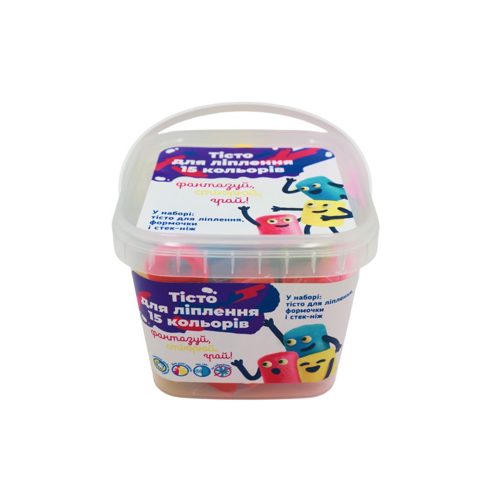Склад набору: тісто для ліплення 15 кольорів по 30 гр, пластикові формочки - 8 шт., стек-ніж з пластику - 1 шт.| Країна: | Україна |