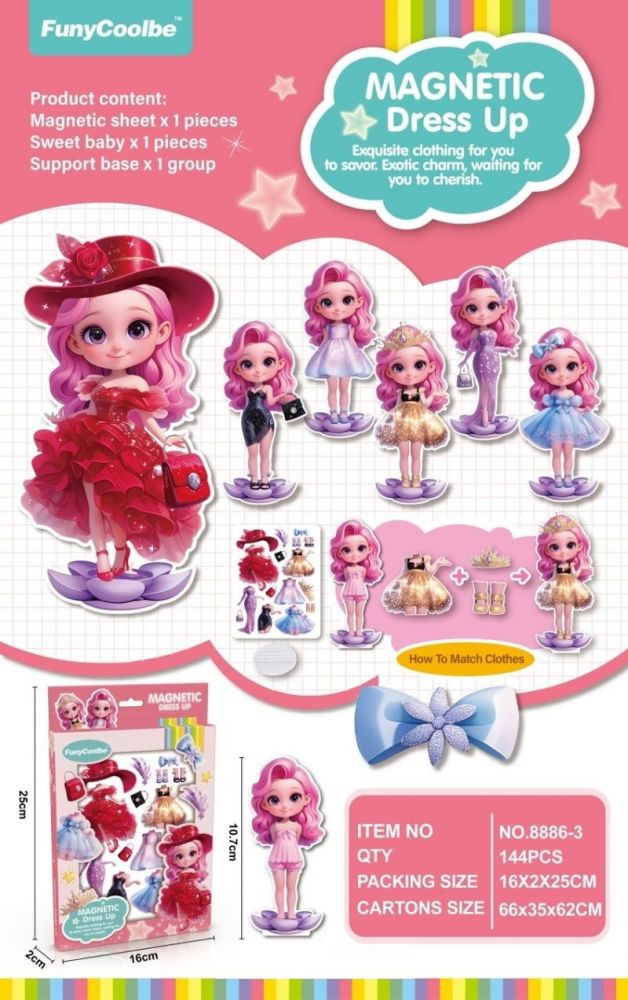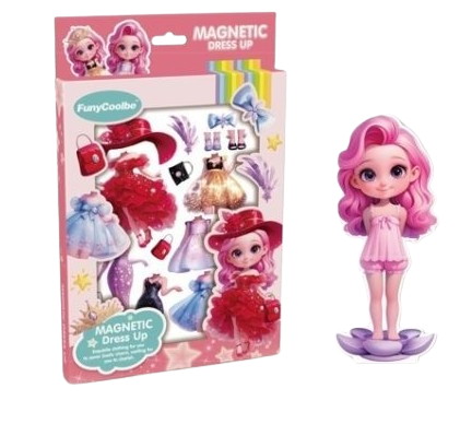 Лялька з рожевим волоссям та стильними аксесуарами допоможе створити десятки модних образів – від вечірньої сукні до казкового костюма принцеси. Всі деталі на магнітах, тому їх легко кріпити й знімати, комбінуючи на свій смак.