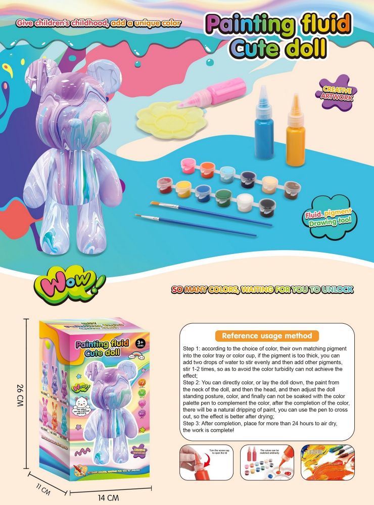 Створіть власну унікальну іграшку з набором для творчості флюід-арт "Ведмедик"! Біла фігурка-ведмедик стане ідеальним полотном для маленьких художників. Завдяки різноманітним фарбам і спеціальним пензликам дитина зможе створити неповторний дизайн, розвиваючи фантазію, дрібну моторику та відчуття кольору.