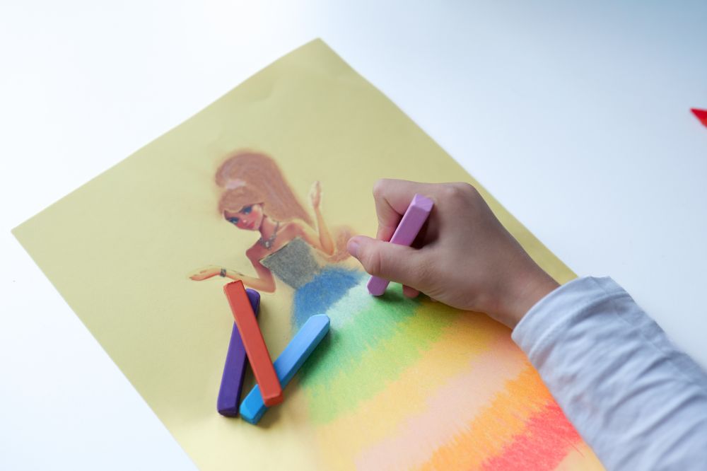 Процес простий і захопливий: дитина обирає образ, додає кольори та створює унікальні поєднання. Пастель м’яко наноситься і легко розтушовується, що дає гарний результат навіть без навичок малювання.
