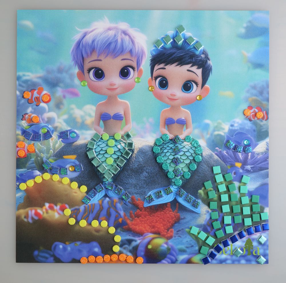 Яскравий набір для створення мозаїчних картин із казковим сюжетом про русалок. Дитина крок за кроком прикрашає ілюстрації кольоровими елементами, створюючи об’ємний та блискучий ефект.